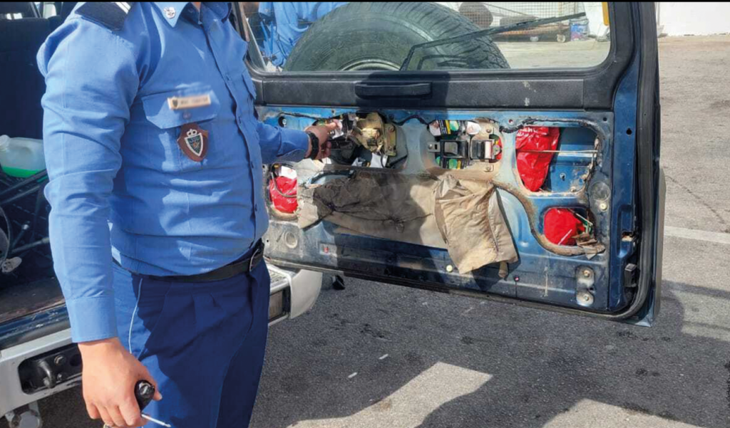 و بعد تفتيشها تمكنت عناصر الجمارك من العثور و حجز كمية كبيرة من مادة المعسل، التي كانت مخبأة بعناية في أجزاء مختلفة (5 إطارات، وجدران الأبواب، وتجويفات أرضية..)