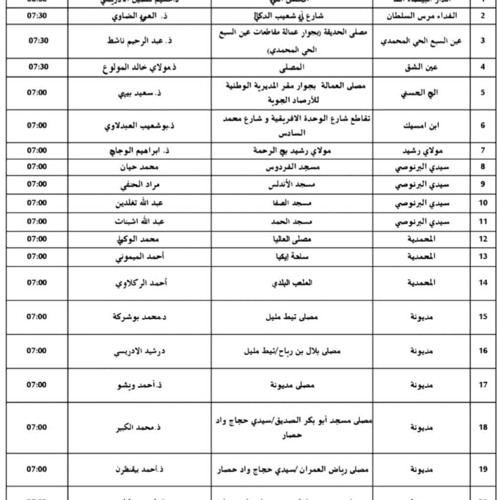 كشفت المندوبية الجهوية للشؤون الإسلامية بوزارة الأوقاف لجهة الدارالبيضاء سطات عن أماكن المصليات وتوقيتها بكل من ولاية الدارالبيضاء وعمالة المحمدية وإقليم مديونة وهي المدرجة في اللائحة أسفله: